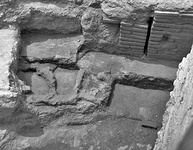 | Description: | Bronze-casting pit and furnace against S apse of Church (106/ΛΕ). Late Roman sherds of the 4th and the 6th c. A.D. were found with fragments of moulds from bronze casting. The west end was destroyed by the church builders. There is a tile floor set on bedrock and two brick piers of the south wall stand to a height of 1.12 m.; one scrap of the north wall establishes a width of 1.05m. Just to the east of this unit, which was probably the furnace, fragments of moulds, charcoal and sand were found on rising bedrock. | |
