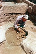 | Description: | Circular pit and irregular cutting north of it. Diam. of pit ca. 0.80m; Dimension of irregular cutting ca. 1.00x1.20m. The pit was dug into bedrock and filled with red earth which was packed with undisturbed pottery. On top were small sherds and broken figurines; below were stacked skyphoi, mostly on east side. At the bottom was a filling of earth and small stones. The pit was well-cut, perhaps as a bedding for a pithos. The irregular cutting contained a similar filling but the pots were stacked, not dumped. The presence of ochre, of trial pieces and of lumps of burnt clay suggest that both cuttings contained refuse from a nearby workshop. This was probably the same establishment to which the well R 17:5 belonged. | |