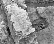 | Description: | Protogeometric grave (female inhumation) located about 0.60m northwest of T 15:1. It consisted of a roughly rectangular pit, with the corners slightly rounded, oriented approximately north-south. The pit was cut to a depth of at least 0.45m at the south end and 0.25m at the north on account of the sloping bedrock. The original depth of the tomb would have been at least slightly greater, since the bedrock around it was leveled in Late Roman times, if not earlier. The tomb pit measured 1.65-1.70m long by about 0.63m wide; the floor of the tomb was at 68.30-68.40 masl., 1.65-1.70m long by about 0.63m wide; the floor of the tomb was at 68.30-68.40 masl. Within the pit, the well-preserved skeleton of a woman aged about 40-44 years at death was found laid out in a fully extended position on her back, head to the south. The left arm was across the waist, the right reaching up over the chest; the head was rolled over onto its right side, facing east. A substantial Late Roman wall ran across the tomb, covering but not disturbing the skeleton from mid-thigh to instep; the bones were recovered by tunneling. The fill was redeposited crushed bedrock. There was no trace of any tomb covering, nor were there any clear ledges, despite the fact that the sides of the tomb sloped slightly toward the floor. | |