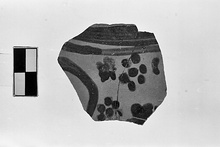 | Contents: | 71 sherds. Objects: loom weights; lamp. Early ware: Gray Minyan; Mycenaean; Protogeometric-Late Geometric; Subgeometric; mottled glaze. Archaic ware: black glaze; oinochoe; skyphos. Plain and banded : coarse ware; cooking stand; cooking pot fragments; hydriae. | |