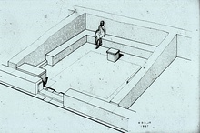 Title:   Restored perspective of South Stoa I Room V, with bench.