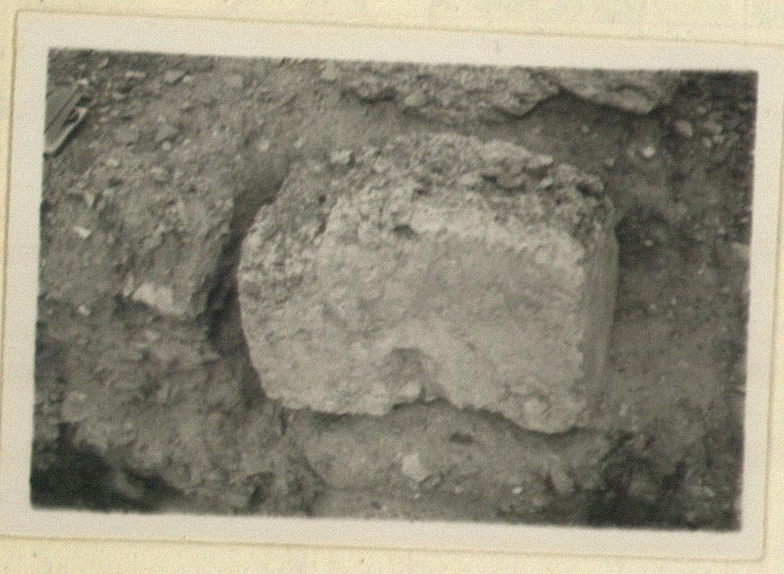 | Context: | Reused as the bedding for the jamb of a gate(?) to the north of the Tholos. Possibly rebuilt in Tholos? | |