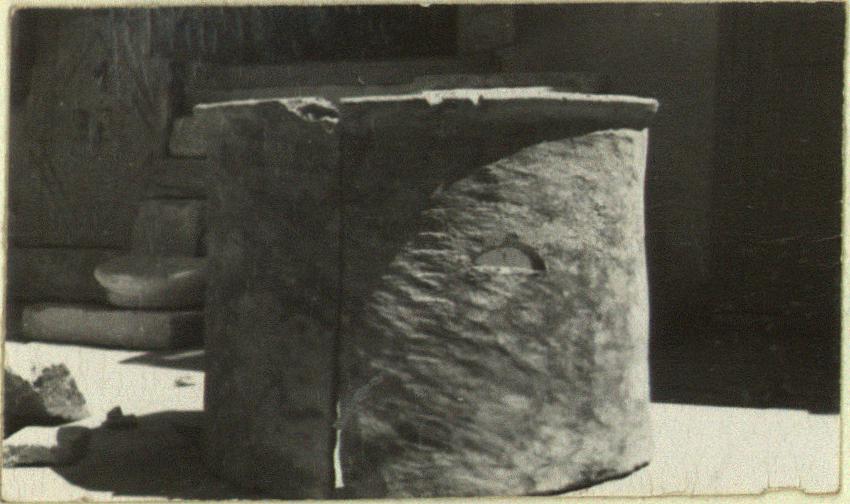 | Description: | Drum of well tiles, intact when removed; one tile broken and repaired. Normal type with hand-holes and thickened upper rim. Red clay. Scratched on the top of the rim of each tile: /Α. | |