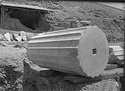 Dimensions:   H. 1.213; Diam. (at bottom, face of arris to arris) 0.657; W. (bearing surface) 0.071, (arris) 0.003, (space between arrises at top) 0.104, (space between arrises at bottom) 0.657; D. (dowel cutting) 0.052