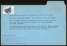 | Description: | Anta capital assembled from 36 fragments. Stoa Poikile series. On the top of the capital note the following indications for the placing of the architrave: a relieving surface, 0.10m. wide and 0.003m. deep, along the edge toward the colonnade, and a weathered surface 0.10m. wide on the one preserved end of the cap: i.e. the end toward the outside of the building; if the architrave retreated the same width from the opposite end of the capital, its soffit measured ca. 0.763m. wide. On the side of the cap remote from the columns, inside the line of the wall, is a relieving surface 0.17m. wide. The top outer edge of the attached wall is rebated to a width of 0.15m. and depth of 0.07m. In the middle of the top of the capital proper are cuttings for lifting tongs. The material is the light brown granular poros of Aegina. The pigments were applied directly to the stone. The workmanship is good. An additional fragment b) gives the lower left corner of the front of the anta cap, and will be added to the reconstructed cap when possible. Very faint traces of blue paint remain on the upper fascia. A large drilled hole (pour channel?) goes in from the left side, not quite straight. | |