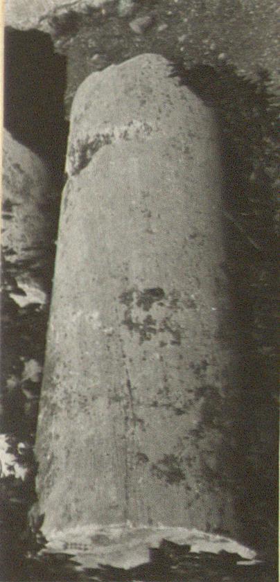 | Description: | Lower end preserved with cutting for empolion; unfluted, finished with fine toothed chisel. Fine work. Grayish blue marble identical with that in capitals A 1595 (Ι 1355) and A 1596 (Ι1356), with which the column shaft is doubtless to be associated. Cf. A 1616 (ΣΑ 1012) of same series, Sounion series. Probably also associated with A 3451 (Ι1699). | |