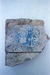 Deep fascia with painted pattern: white lotus and encircled palmette on blue ground. Traces of red and green of lotus adhere to mortar against which this block lay in the wall: A 1711 (ΣΑ 2166).