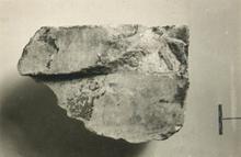 | Description: | A pick-mark on back may indicate that full thickness is preserved, otherwise broken all around. Fascia projecting 0.014m. On top, relieving surface 0.019m. from front edge. From the Temple of Ares. Pentelic marble. | |