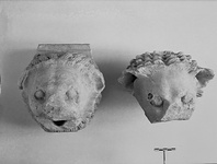 | Description: | Lower jaw and muzzle broken away and the whole head torn from the sima. Hair of crown schematically rendered by pyramidal tufts placed on checkerboard arrangement. Assigned to either the Temple of Ares or the Temple of Hephaistos. Pentelic marble. | |