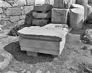 | Context: | Reused by the builders of the Late Roman Fortification to cover a drain to east of tower at S.W. corner of Library of Pantainos. | |