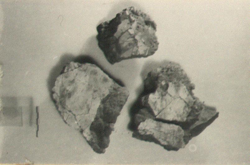 | Description: | The plaster was laid on crude brick in two layers, the first containing coarse sand and brown in color, the second of white lime and marble dust, smooth polished. In a few fragments the finishing coat is Venetian red. The letters are in thin red paint with thick strokes; two can be measured (Τ and Υ) others were higher. No continuos text. Letter forms perhaps of fourth century. Conceivably from north wall of Heliaia. After conservation only three letters, Τ Ρ Α, can be in sequence (O.T., February 1990). | |