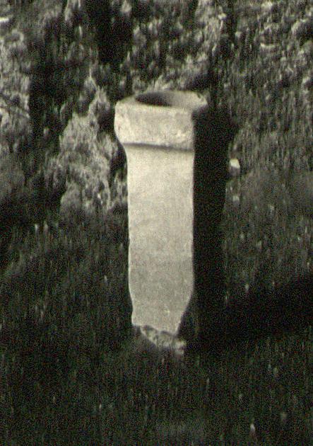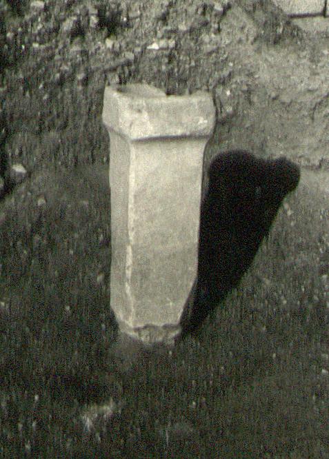 | Dimensions: | H. 1.05; W. (upper part) 0.38, (top of shaft) 0.29; Th. (upper part) 0.41, (top of shaft) 0.31; D. (depression on top) 0.085 | |