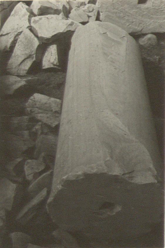 | Description: | Bottom drum; its top broken away. Lower empolion 0.085m. x 0.085m. x 0.06m. Note face incised on shaft at height of 1.22m. Sounion series. | |