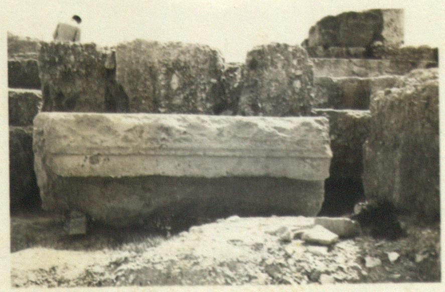 | Context: | Found built into the substructure of the eastward extension of the small 'rectangular building' to the north of the Apollo temple. From the earth in which it was imbedded a few black-glazed sherds, extending down to the fourth century, but probably not later. | |