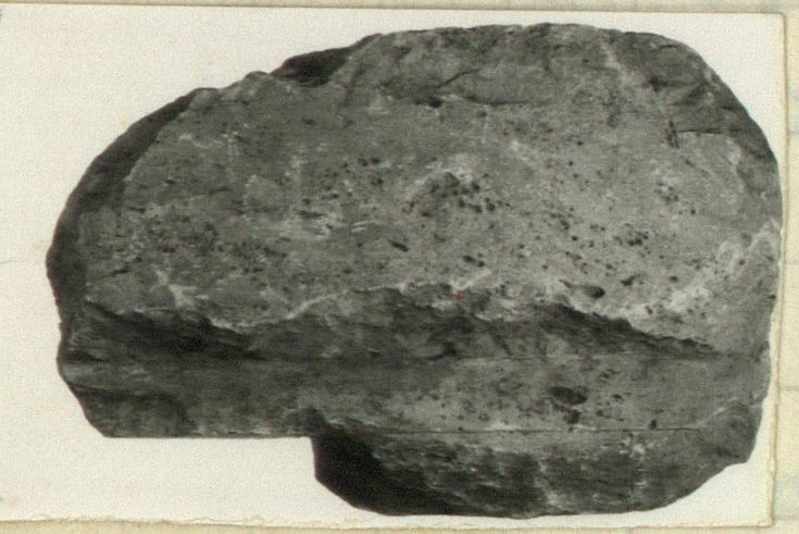 | Description: | Broken left and back, bottom worn down. Crowning molding broken away. Fascia bears red paint. Part of one mutule and one via. Gutta cut off, traces indicate their diameter. Anathyrosis on side. Mason's mark Α on top. Limestone or poor grade porous marble, grayish in color. Cf. A 4196 (ΡΡ 147). | |