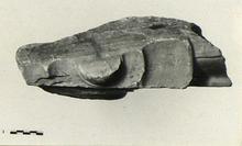 | Description: | Broken right, top, back and part of bottom. Lower part of volute partially sawn away. Left side of capital. Preserved are: middle part of volute with part of eye with engraved concentric circles; part of balusters; bottom resting surface; part of echinus with traces of Lesbian leaf and maeander. From Temple of Athena at Sounion. Streaky gray and white Agrilezza marble. | |
