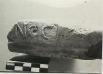 | Description: | Part of one edge preserved to full thickness; otherwise broken. Brownish buff clay, micaceous. Lighter buff slip. Stamped on edge. | |