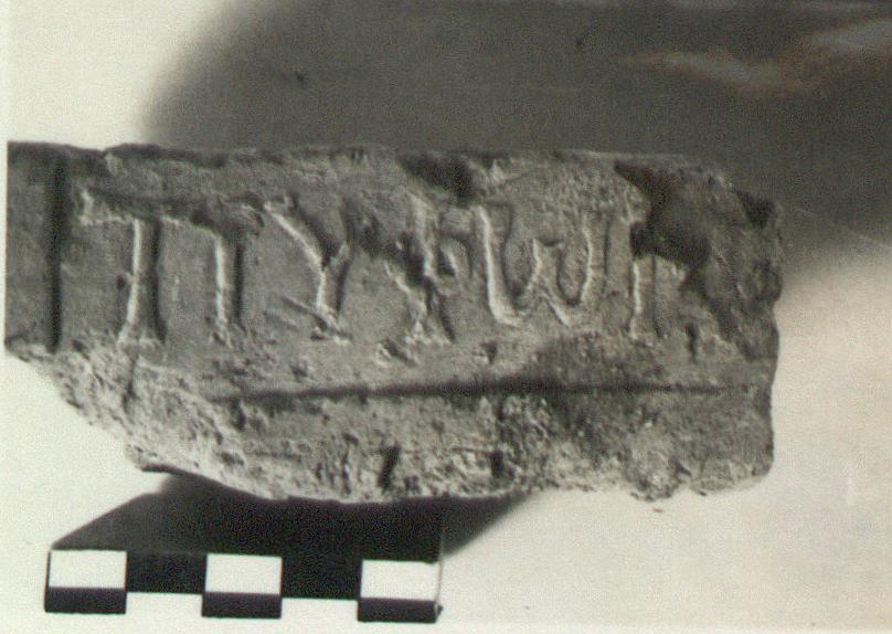 | Description: | Part of one edge preserved to full thickness; otherwise broken. Brownish buff clay, micaceous. Lighter buff slip. Stamped on edge. | |