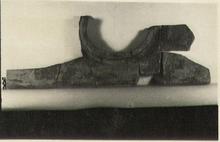 | Description: | A non-joining corner fragment of a trough tile with a large hole, of which about half is preserved forming nearly a half circle, surrounded by a rim as Α 428 (Β 966). One corner of the tile is preserved, a non-joining fragment gives an other. Clay similar to A 428. Dull purplish glaze, much flaked, on upper surface. | |