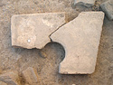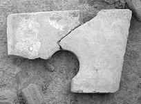 | Description: | Two joining fragments, preserving ca. three quarters of seat. Total width 0.750m; total length 0.50m. Smooth-finished top surface, front and back; rough-worked sides and surface inside the keyhole cutting. Bevel around keyhole. Seat block may originally have been two joined pieces. Marble. | |