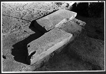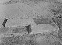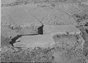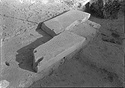 One end is finished with a toothed chisel to be visible, the other end has anathyrosis. The inner face is smooth-dressed with the tooth chisel. The underside is roughly but regularly picked in the middle, with a smooth joint surface along either side, this finished with a tooth chisel. The top surface is still more roughly picked in the middle part, and has a smoothed band along either edge, this at a slightly lower level than the surface of the middle part. The outside face is lightly stippled with a smoothed border along all edges. The treatment of the joint surface suggests that the block rested on the stone courses of the lower part of the wall and that it carried an upper wall of crude brick. Since the exposed end shows no trace of a doorjamb one may place the block to one side of the opening that provided communication between the Tholos and its North Annex.