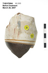 Body fragment. Glaze below figured zone fired brownish. Max. dim. 0.097.