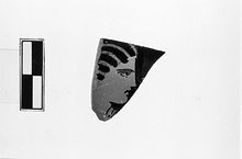 Woman (head, start of draped shoulder) to right. Preliminary sketch. Relief contour. Dilute glaze: area between waves of hair.