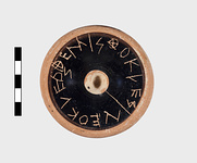 | Description: | Kylix base with black glaze. Inscribed on bottom. Part of stem of kylix. | |
