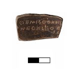 | Description: | Sherd, poor brown glaze. Inscribed on inside. Spelled ΘΕΜΙΣΘΟΚΛΕΕΣ. | |