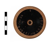 | Description: | Kylix base with part of stem. Black glaze. Inscribed on bottom. | |