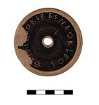 | Description: | Kylix base with black glaze. Some red lines. Inscribed on bottom. Chipped at rim but name is legible. | |