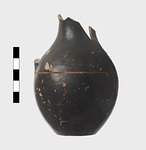 | Description: | Mouth broken off and handle. Hole in side, red line around center. Letters on neck. | |