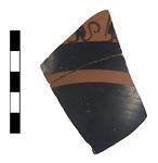 | Description: | Two joined sherds with black bands and part of animal and human figure above. | |