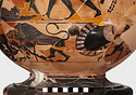 Description:   About two-thirds of large black-figured krater by Exekias.