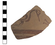 Description:   Fragment of large vase with red bands and stork and part of legs of second bird.