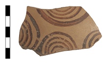 | Description: | Sherd with four sets of concentric circles. Brown on buff. ADDENDA 2018: Single sherd to a closed shape with no preserved features. The exterior decoration consists of two ranks of running spirals. The paint is thick, fairly evenly applied, and fired dark brown. There are no traces of use-wear or burning. Furumark Motif 1: 46 | |