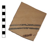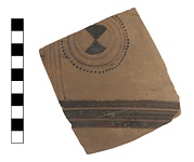 Description:   Bands, parallel lines, concentric circles, dots and double axe patterns. Brown on buff.