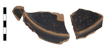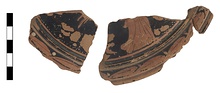 | Description: | Two fragments of rim. Band of leaf design and lower part of draped female figure. | |