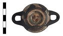 | Description: | Fragments of cup. Black glaze inside. Black and red bands outside. Black decorations on white ground on rim between handles. | |