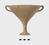 | Description: | Kylix of light buff clay, put together from many fragments. | |