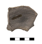 | Description: | Soft grey clay, dull grey surface; low base of wide open bowl; middle Helladic period. | |