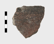| Description: | Coarse gray clay; fired black to red; plain ware; thick; handle break. | |