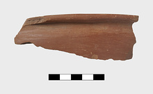 | Description: | Red clay, rose brown polished surface, portion of rolled rim preserved; late Helladic. | |