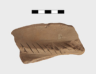 Description:   Coarse rust clay, rough rust surface, band of diagonal slashes.