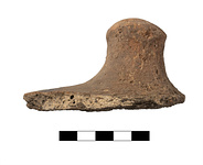 | Description: | Coarse black clay, rough maroon surface, large round lug; early helladic. | |