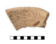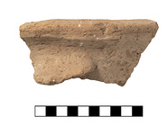 | Description: | Coarse buff clay, rough poor buff surface, carelessly made lug, portion of vase rim preserved. | |