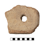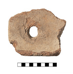 | Description: | Pink clay coarse, rough dirty surface, piece of spit support; wide base with thick tapering walls. | |