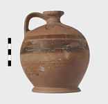| Description: | Broken base; small neck; buff; bands and zig zag of red brown. | |