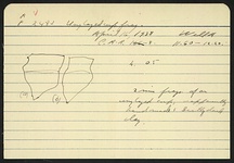 | Description: | Two rim fragments of an unglazed cup, apparently hand made; gritty dark clay. | |