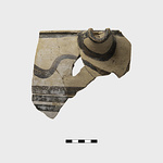 | Description: | Fragment with a spout, buff clay with red black glaze decoration. ADDENDA 2018: Four sherds mended into a single large spouted krater fragment with horizontal rounded rim. The exterior decoration consists of a medium rim band and three medium bands running beneath the handle zone. There is a medium band around the attachment of the spout, as well as on its lip. In the handle zone there is a wavy band. The interior is undecorated with the exception of a lip band. The paint is thick and fairly uniform, fired black. There are traces of black discoloration on the interior of the vessel. These are slightly different then the circular rings associated with use as a lamp. There are no other traces of use-wear. Furumark Shape: 298; Furumark Motif 1: 53 | |
